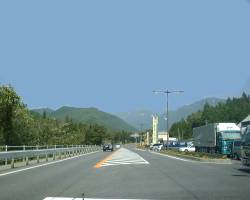 「道の駅大桑」は右 (車の中から) Road station "Ohkuwa" is at right hand side (not visible) (Photo shown from inside car) |