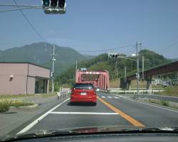 この赤い橋の下で地ビール を飲む*阿寺川方面へ通じる Drank local beer under this red bridge *Leading to Adera river area |